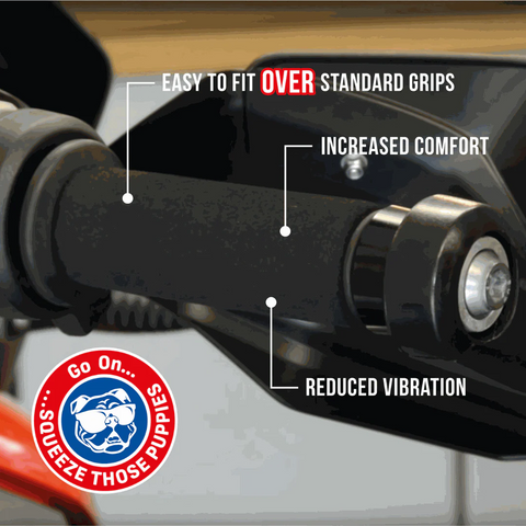 As simple as effective: the "Grip Puppies“ are designed for you motorcycle handles. They can be easily pulled over the standard handles, without the need to be removed or treated. The material is soft grip, absolutely comfortable grip, slip-resistant grip and lies perfectly in the hand grip. Vibrations of the handlebar are significantly reduced and due to the larger circumference of the grip and handles more comfortable. The material retains its consistency, even in long terms.