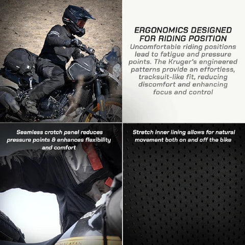 Made with heavy-duty mesh and Cordura 500D in key zones, the Kruger pants strike the perfect balance between airflow and abrasion resistance. Stretch panels at the knees and crotch ensure flexibility on long rides, while the mesh-lined interior enhances breathability across changing terrains and temperatures.