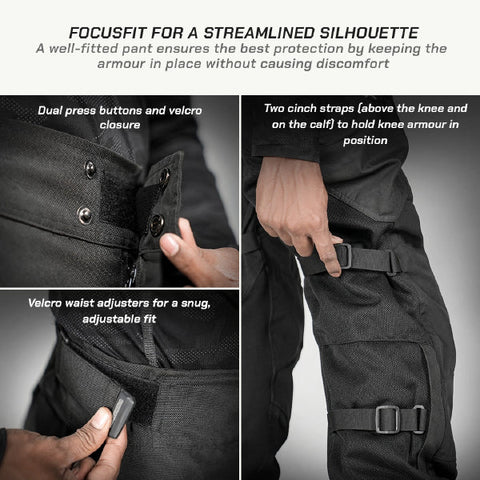 Integrated 3M Scotchlite reflectives are subtly placed along the lower leg and thigh areas - offering enhanced nighttime visibility without clashing with the pants’ clean touring aesthetic. You stay seen when it matters, without looking flashy during the day.