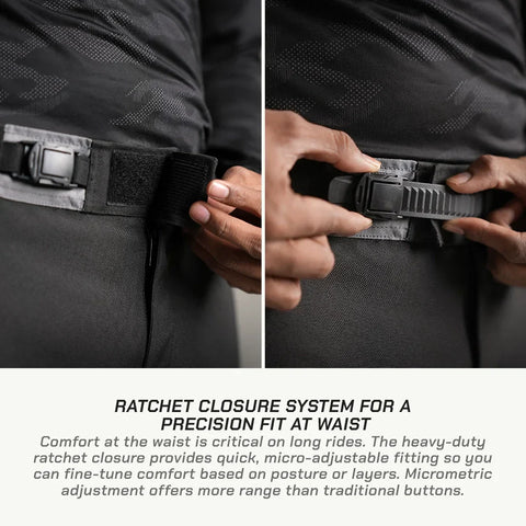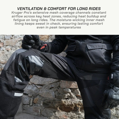 Designed for riders who demand uncompromising protection and comfort, the Kruger Pro Pants combine SuperFabric, Invista Cordura, and Sas-Tec CE Level 2 armour for maximum impact and abrasion resistance. With extensive mesh coverage, BootFlex calf stretch panels, and a ratchet closure system for a dialed-in fit, they deliver superior ventilation, all-day comfort, and secure armour positioning. Every element of the Kruger Pro Pants is built to raise the bar for what touring pants can be, especially for Indian climatic conditions.