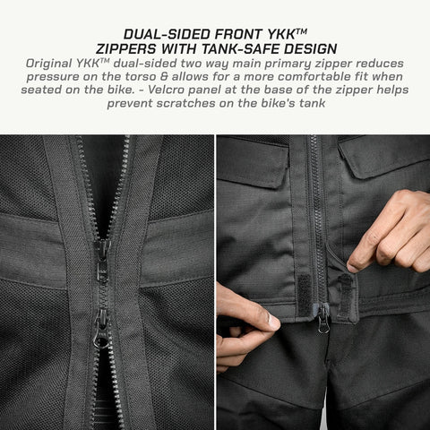 Crafted from abrasion-resistant Cordura 500D, the Kruger Air is purpose-built for high-mileage touring. Reinforced panels at impact zones improve tear resistance, while heavy-duty mesh construction allows for all-day breathability. Premium fittings, bar-tacked seams, and durable adjusters ensure the jacket holds up ride after ride. Original YKK zippers & pullers for extra durability and smooth operation of zips with best in class coverage with 180 jacket-pant connector